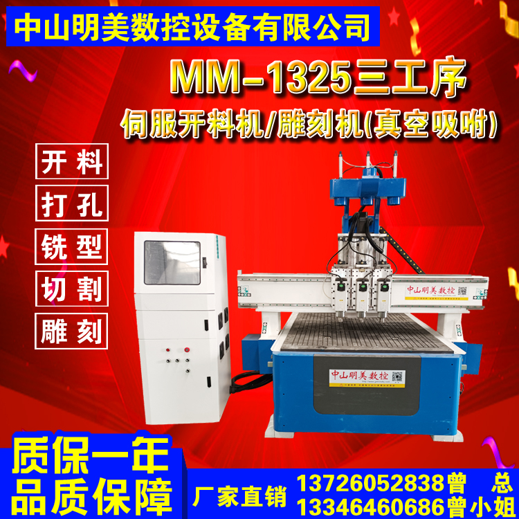 創(chuàng)新的設計及高精度的制造,使機床的性能比以前提高50%,高強度的鋼性結構。 2、三軸原裝進口導軌,絲杠,伺服電機,速度快效率高,是普通機器的3-5倍。 3、高速度變頻水冷主軸,配工業冷水機,扭矩大,轉速高,加工效率高,使用壽命長